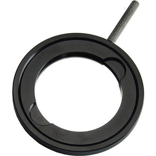 The Godox Gobo Set Holder slips into the separately-purchased Projection Attachment and supports gobos with patterns etched into them, which are then projected on scenery.