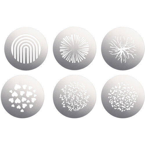 The Godox Gobo Set VSA-GS2 is yet another accessory for the multi-faceted Projection Attachment. The set of 6 gobos adds a personal touch to any kind of creative work such as theater, video, film, actors, or fashion. The set includes gobos such as stars, hearts, and trees.